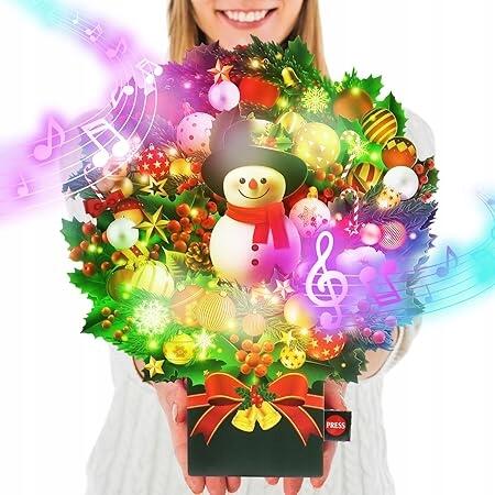 3D karácsonyi képeslap karácsonyi énekpel és borítékkal - Hóember koszorú (C046-048)ALLEGRO